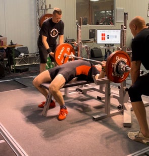 NK powerlifting. Silver voor Art Asrian. NL record (BP) 142,5kg.